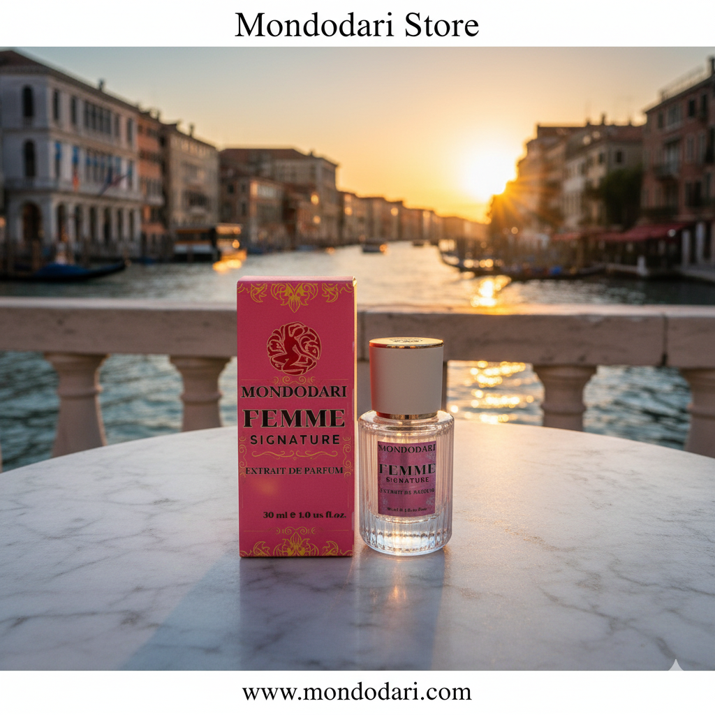 กลิ่นหอมที่เปล่งประกายดั่งแสงสุดท้ายแห่งเวนิส 💫 FEMME SIGNATURE น้ำหอมแห่งความอ่อนโยน หรูหรา และน่าหลงใหล