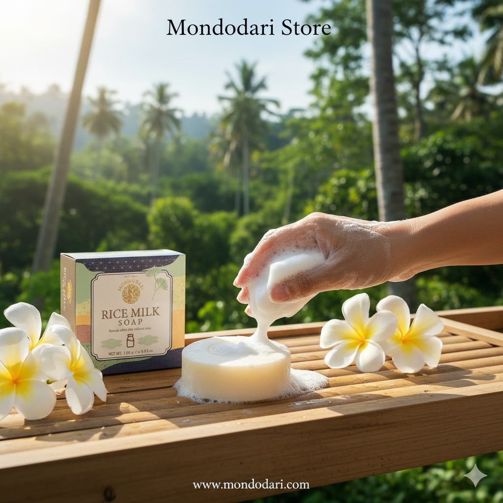 MONDODARI Rice Milk Soap — hydrates and softens for radiant, healthy skin.